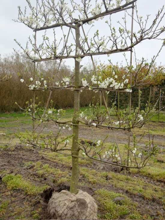 Pflanz- und Pflegetipps Prunus domestica 'Opal' / Pflaume Opal 'Boden-Spalier' H:160 B:160 T:20 (Stamm 50 cm)