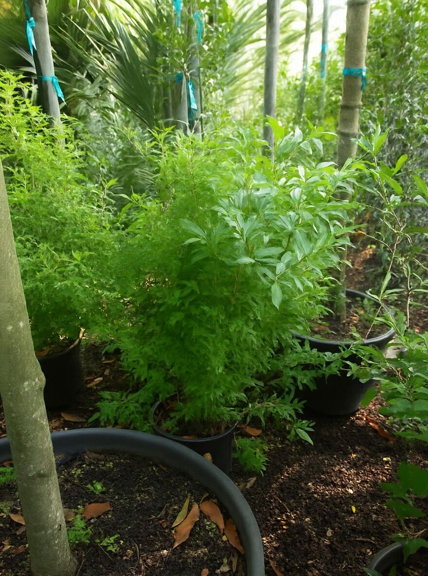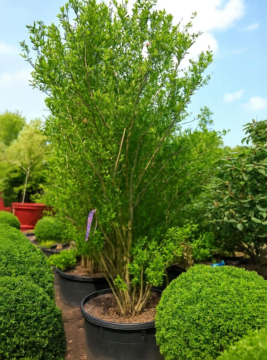 | Wuchs: | Großer Strauch oder kleiner Baum, gut verzweigt und dichtbuschig, bis zu 5 m hoch und 3 m breit |