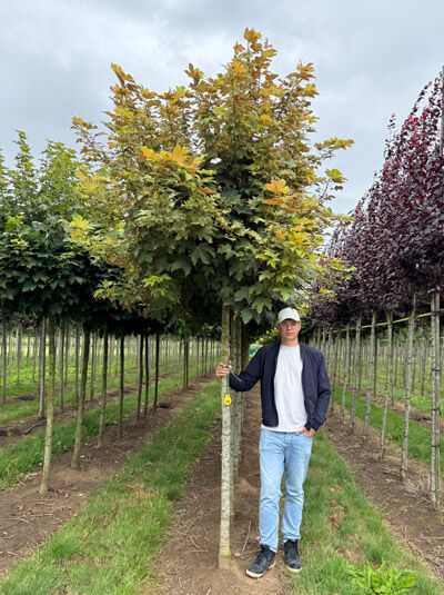 Der Berg-Ahorn ’Prinz Handjery‘ ist ein dekorativer, kleinbleibender Laubbaum, der mit einer formschönen Krone die Aufmerksamkeit auf sich zieht. Er bleibt kompakt, schenkt mit einer breitrunden Baumkrone aber einen malerischen Anblick. Das Blattwerk der Selektion ‘Prinz Handjery‘ vollzieht ein herrliches Farbenspiel von Rosa über Grün gemustert bis zu Gelb und macht den Baum zu einem wunderschönen Solitärgewächs, das in vielen Hausgärten und Parkanlegen zur Geltung kommt. Aufgrund der geringen Wuchsgeschwindigkeit ermöglicht die Selektion ’Prinz Handjery‘ auch die Pflanzung in einem Innenhof oder bspw. auf einem Friedhof. Der Kugelförmige Berg-Ahorn setzt kontrastreiche Akzente und wird gerade in Einzelstellung gepflanzt besonders eindrucksvoll zur Geltung kommen. Hier kann die breite Krone sich bestmöglich präsentieren und ein einzigartiges Naturerlebnis vermitteln.