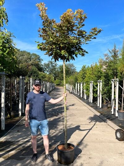 Die formschöne, nahezu kugelige Krone präsentiert sich auf einem aufrechten Stamm und wirkt dadurch....