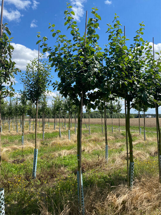 | Wuchs: | Kleiner Baum mit kräftigem aufrechten Wuchs, gut verzweigte offene Krone mit kurzen Trieben, bis zu 7m hoch und 5m breit |