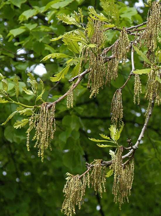 Im Mai bildet Quercus macrocarpa ihre auffälligen Blüten aus. Sie fallen durch den heranhängenden Wuchs auf und unterscheiden sich hierdurch von Blüten anderer Eichenbäume. Mit einer grüngelben Farbgebung schmücken sie den Baum und verleihen ihm einen Hauch von Extravaganz.