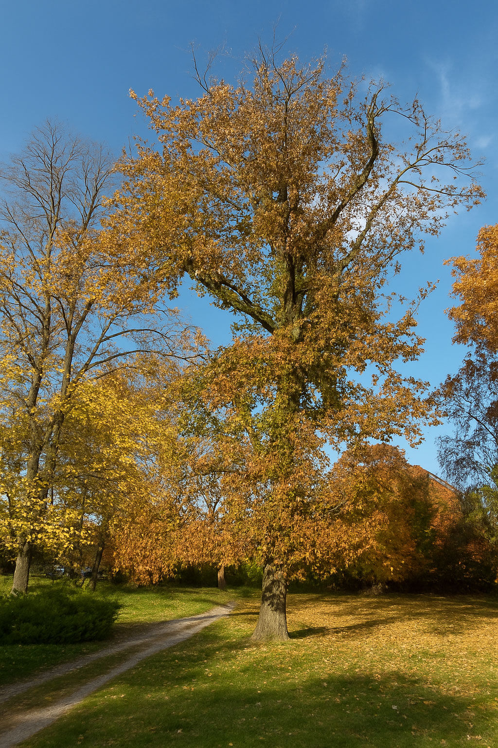 | Wuchs: | Großer Laubbaum, aufrecht, ausladene und abgerundete Krone, gut verzweigt, unregelmäßiger Habitus, 20 bis 30 m hoch, langsam wüchsig. |
