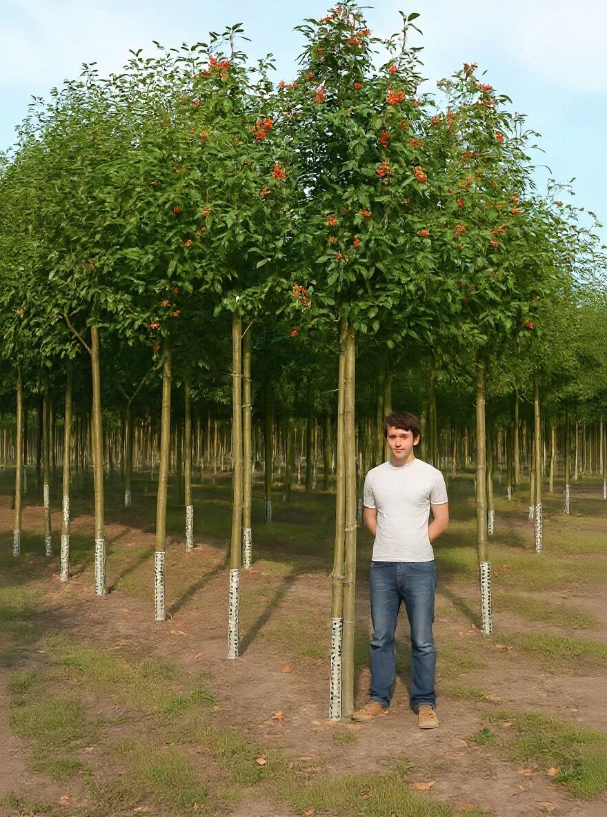 - Mährische Eberesche präsentiert eine pyramidale Baumkrone und wird bis zu 15m hoch
