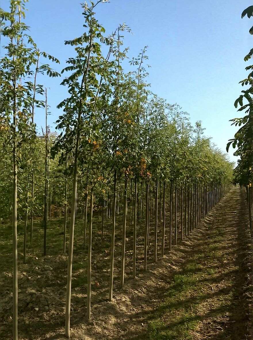| Blatt: | Unpaarig gefiedert, 13 bis 17 Teilblättchen, Oberseite dunkelgrün, Unterseite blaugrün, Blattspindel braunrot, Herbstfärbung gelb bis orange, Fiederblatt bis zu 20 cm lang |