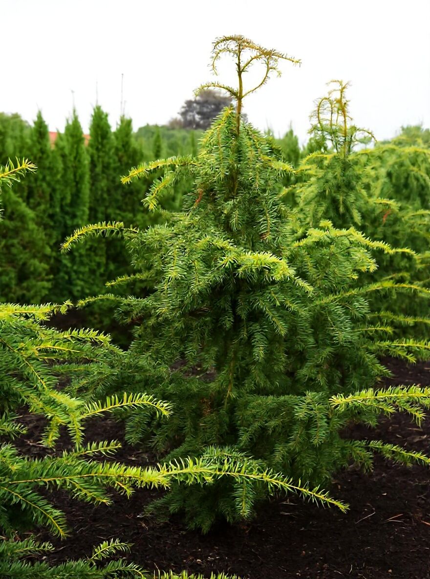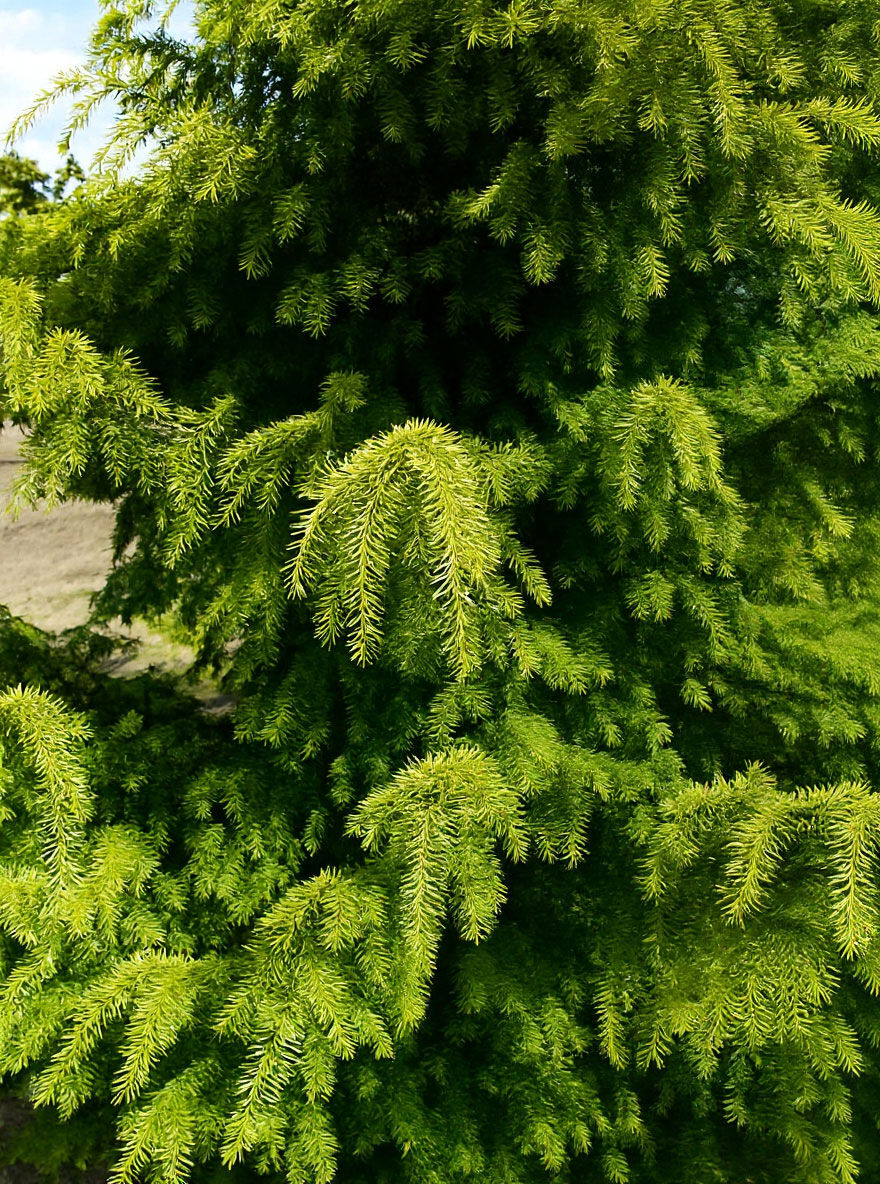 | Blatt: | Nadeln; dunkelgrün, mit gelbem Rand, untere Seite gelbgrün |
