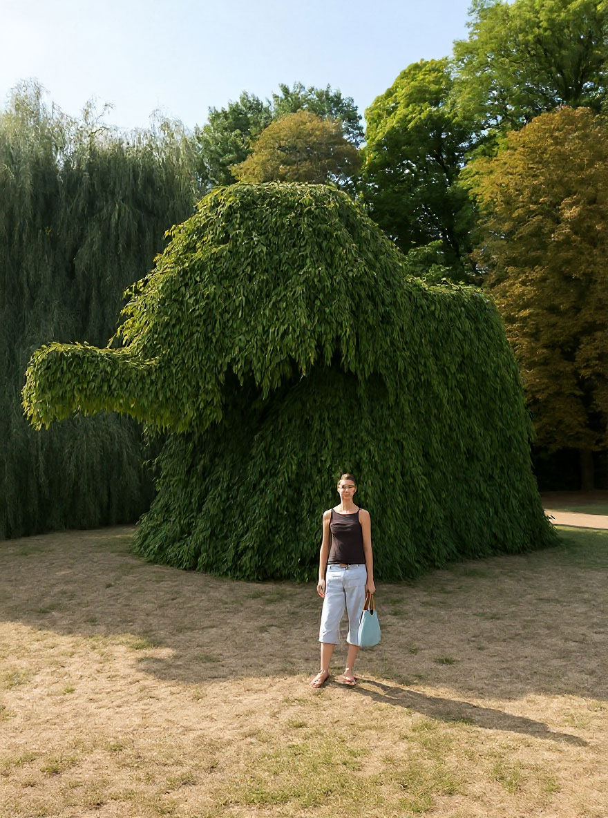 | Wuchs: | Großer Baum mit weit ausladender Krone, durchgehender Stamm, Äste waagerecht oder bogenartig, z. T. bis zum Boden hängend, 15 bis 25 m hoch und 20 bis 25 m breit. |