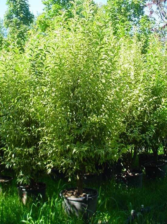 | Wuchs: | Großer Strauch bis kleiner Baum, straff aufrecht, rundlich, bis zu 4 m hoch und 3 m breit |