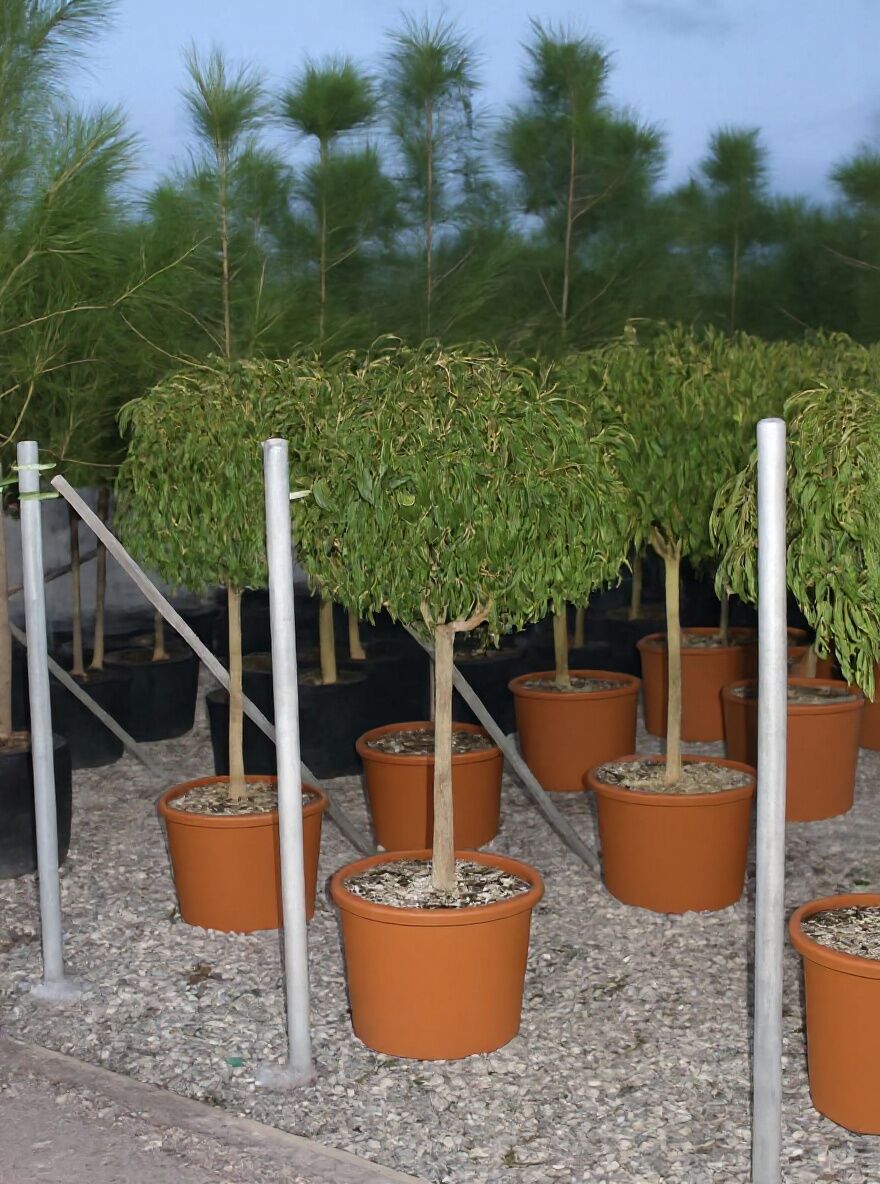 Der Portugiesische Kirschlorbeer ‘Angustifolia’ als Hochstamm verbindet mediterrane Anmutung mit hoher Alltagstauglichkeit. Die schmalen, dunkelgrünen Blätter wirken edel und ruhig, während die Hochstammform klare Strukturen schafft und Raum unter der Krone lässt.