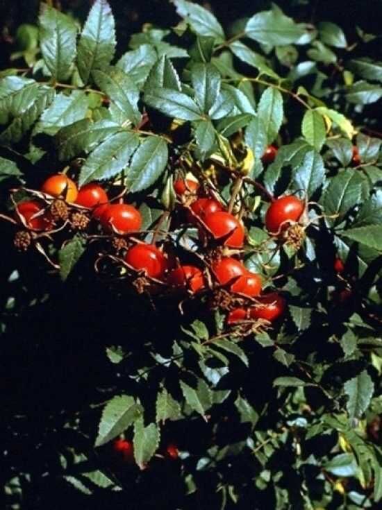 Frucht: | Hagebutten, scharlachrot, flachkugelig, 15 mm breit |
