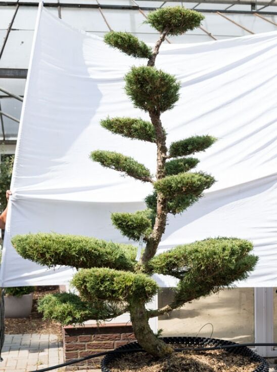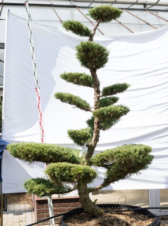 | Eigenschaften: | Der Juniperus media 'Hetzii' H: 260 cm B: 170 cm / Garten-Bonsai (621) erweist sich als sehr schnittverträglich und robustes Gehölz. Dieser Gartenbonsai ist sehr frosthart, hitzeverträglich, wind- und stadtklimafest und eignet sich aus diesen Grunde hervorragend zum Formgehölz.. |