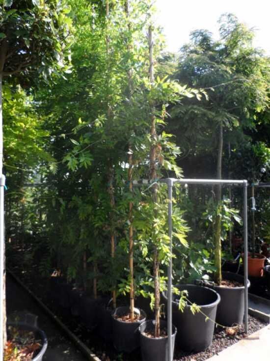 Blatt: Sommergrün, elliptisch bis länglich-eiförmig, gefiedert, am Ende zugespitzt, hellgrün, Herbstfärbung gelblich, bis zu 8 cm lang