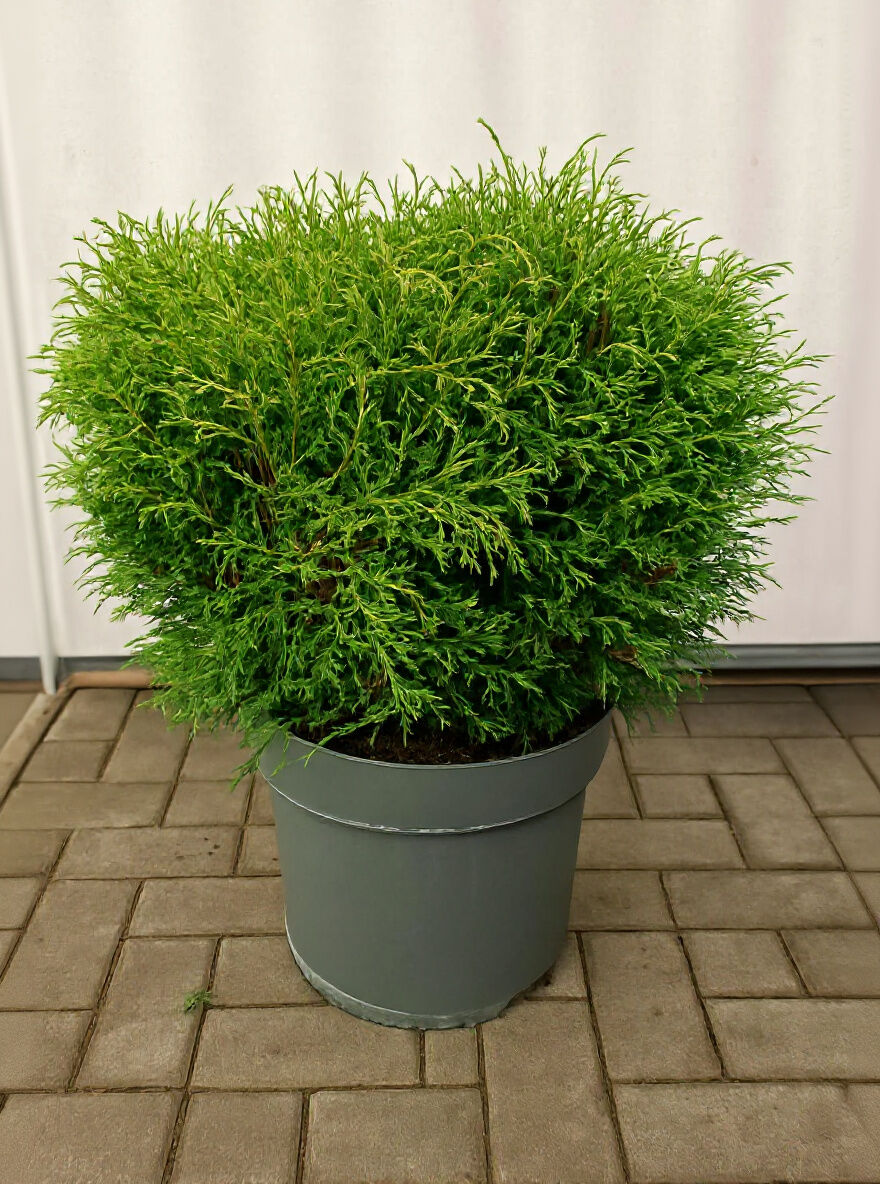 Thuja occidentalis 'Mr Bowling Ball' / Bubikopf-Lebensbaum 'Mr Bowling Ball' 50-60 cm C12, kugeliger Nadelstrauch im Topf