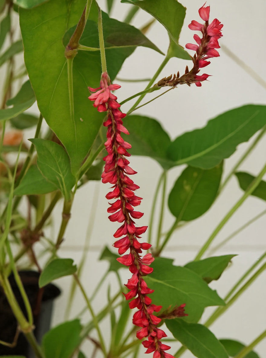 | Blüte: | Einfache, lachsfarbene, orange ährige Blütenstände, unbedeutend. |