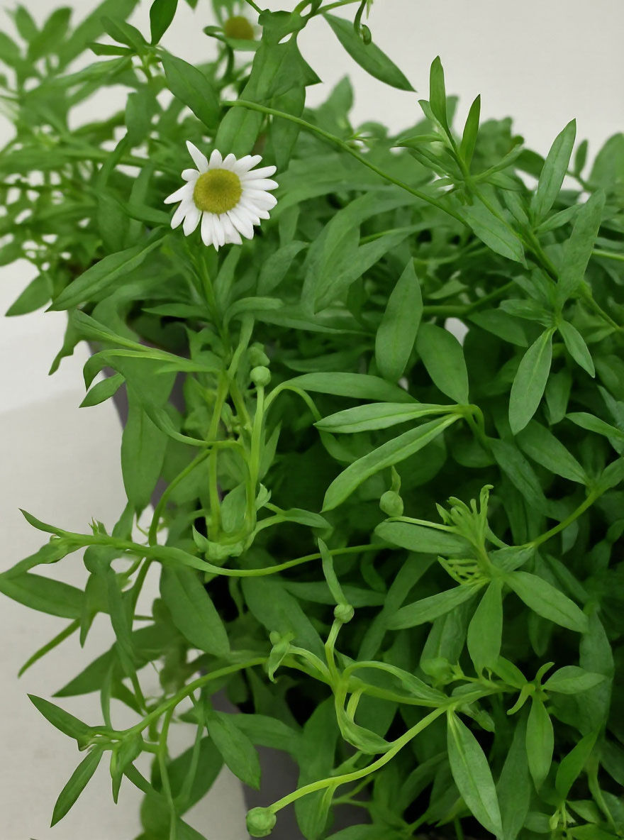 | Blüte: | Einfache, weißrosa verzweigte Blütenstände, körbchenartig. |
