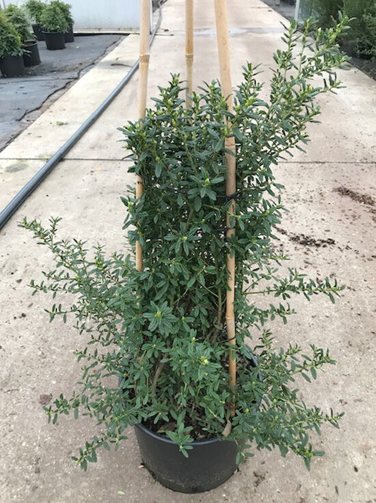 | Wuchs: | Kleiner bis mittelgroßer Strauch, dicht verzweigt und kompakt, ca. 150 bis 200 cm groß |
