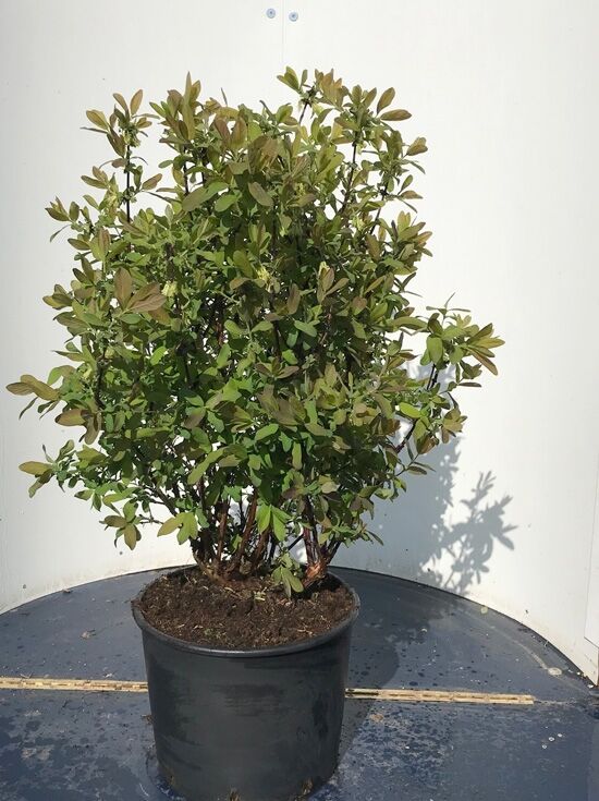 Wuchs: | Mittelgroßer Strauch, dicht, reich verzweigt, 1,2 - 1,8 m groß |