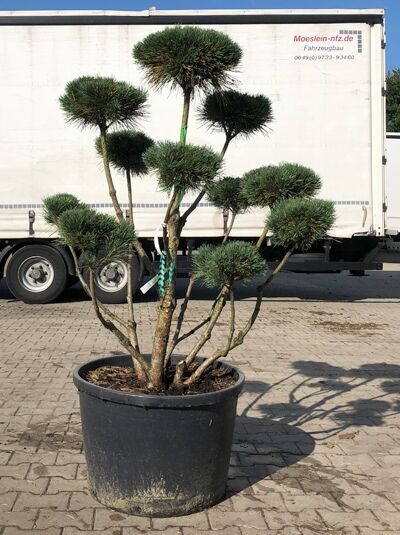 | Eigenschaften: | Die Pinus sylvestris 'Watereri' Breit 100-125cm x Hoch 125-150cm (Nr. 1105) / Strauch-Wald-Kiefer (Bonsai) ist eine malerische, kleinwüchsige Kiefer, die extrem frosthart, windfest und stadtklimafest ist. Sie ist problemlos im heimischen Garten unterzubringen. Grade als mehrstämmige Schirmform eine wirkliche Seltenheit. |