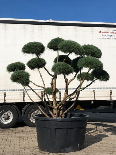 | Eigenschaften: | Die Pinus sylvestris 'Watereri' Breit 150-200 cm x Hoch 160-180 cm (Nr. 1115) / Strauch-Wald-Kiefer (Bonsai) ist eine malerische, kleinwüchsige Kiefer, die extrem frosthart, windfest und stadtklimafest ist. Sie ist problemlos im heimischen Garten unterzubringen. Grade als mehrstämmige Schirmform eine wirkliche Seltenheit. |