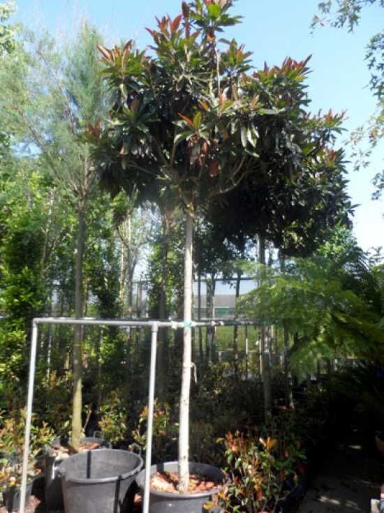 Eigenschaften: Die Eriobotrya deflexa (Chinesische Wollmispel) wird sehr gerne als Ziergehölz im Garten oder als Straßenbaum verwendet. Besonders ansprechend ist der bronzerote bis kupferfarbene Frischtrieb, der in eine dunkelgrüne Farbe übergeht. Auch die angenehm duftenden Blüten werden Sie begeistern! Diese Sorte wird Ihren Garten bereichern und alle Blicke auf sich ziehen. Dieses tolle Zierelement ist bedingt winterhart, daher eignet sich die Pflanze zur Auspflanzung nur in klimatisch, günstigen und wintermilden Lagen an geschützten Plätzen. Zum Überwintern wird allerdings ein guter Winterschutz benötigt. In rauen Lagen muss deshalb nicht auf dieses wundervolle Prachtstück verzichtet werden. Hier raten wir eher zu einer Kübelbepflanzung. Im Winter sollte ein geschützter, frostfreier Standort im Wintergarten oder Kalthaus gesucht werden. SIe werden diese Chinesische Wollmispel lieben!.