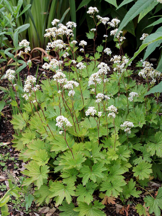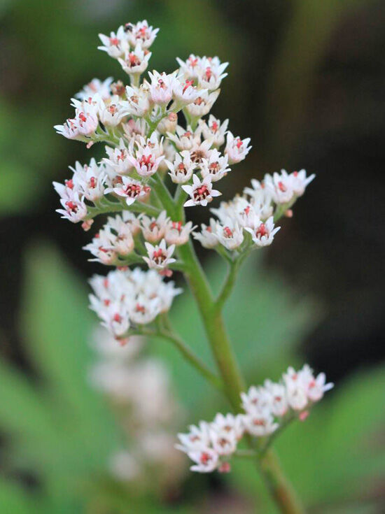 Eigenschaften: | Die Mukdenia rossii ‚ Karasuba‘ (Ahornblatt ‚ Karasuba‘) stammt ursprünglich aus China. Diese Staude präsentiert sich mit einem buschigen Wuchs und erreicht in der Spitze eine Wuchsendhöhe von ca. 30 cm. Das Blattwerk bietet sich dem Betrachter in einer bronzegrünen Färbung an und ähnelt dem Efeu. In den Monaten von April bis Juni zeigt das Ahornblatt ‚ Karasuba‘ einen ansprechenden weißen Blütenstand. Der Aufbau der Blüte erweist sich in doldenartiger Form. Eine optimale Entwicklung wird man auf frischem und zugleich durchlässigem Untergrund erwarten dürfen, sofern der Stand im halbschattigen Bereich des Gartens angesiedelt ist. Wir empfehlen unseren Kunden 9 bis 11 Gewächse pro Quadratmeter zu setzen, um eine perfekte Optik zu erreichen.. |
