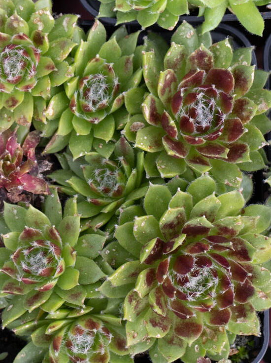 | Name Botanisch: | Sempervivum arachnoideum 'Silberkarneol'. |
