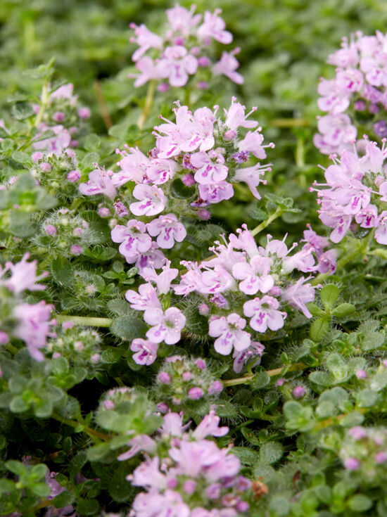 Die Thymus serpyllum 'Elfin' (Sand-Thymian, Teppich-Thymian) wird besonders gerne zur Flächenbegrünung auf Fels-Steppen, Heiden, Matten und Steinanlagen gewählt, da diese immergrüne Staude...