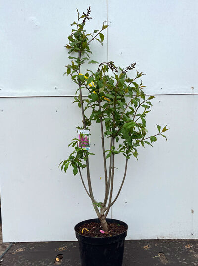 Blüte: Knospen weinrot, die Blüte erstrahlt in magentarot bis hellrosa, in Rispen, bis zu 25 cm lang