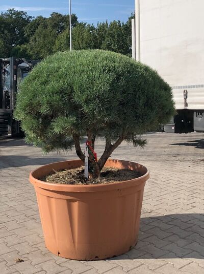 | Eigenschaften: | Pinus sylvestris 'Watereri' Breit 140 cm x Hoch 120 cm (Nr. 1161) / Strauch-Wald-Kiefer (Schirmform)ist eine malerische, kleinwüchsige Kiefer, die extrem frosthart, windfest und stadtklimafest ist. Sie ist problemlos im heimischen Garten unterzubringen. Grade als mehrstämmige Schirmform eine wirkliche Seltenheit.. |