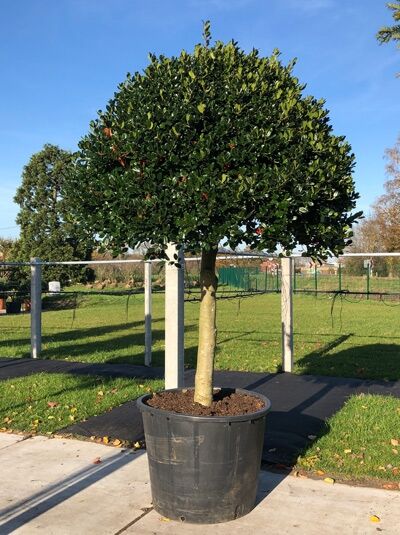 | Eigenschaften: | Der Ilex aquifolium 'Siberia'® / Ilex aquifolium 'Limsi' / Stechpalme 'Limsi' / Stechplame Siberia 120 cm Stamm und 230 cm Gesamthöhe (546234) erweist sich als frosthärtestes und gut schnittverträgliches Gehölz seiner Art. Auch diese Gattung bildet sehr schöne kompakte Kronen, die unter normalen Umständen nicht zu durchdringen sind, denn das stechende Blatt bildet einen unangehmenen Gegenspieler. Überzeugt vor allem durch den ansprechenden Fruchtschmuck und das beständige dunkelgrüne Laub. Solch einen Solitär bekommt man nur selten zu Gesicht und kann neben der Solitärstellung auch in der Allee oder aber als immergrüner Schutz für den Nachbarn genutzt werden. |
