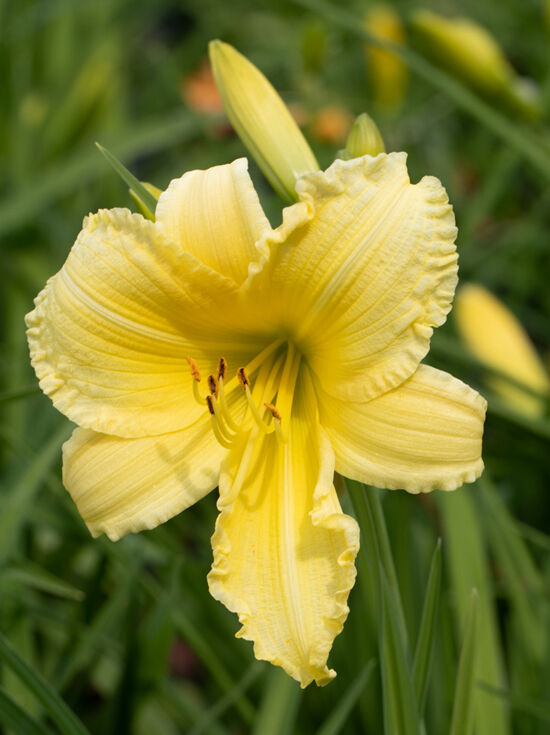 Blüte: | Einfache, zitronengelbe, mit gelbgrünem Schlund, verzweigt, trichterförmig, kelchförmig |