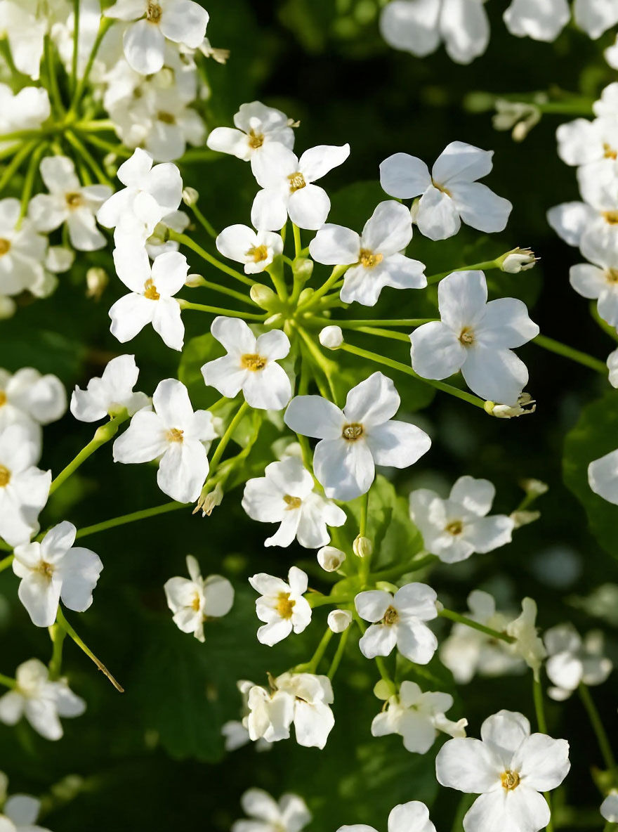 | Blüte: | Einfach, weiß, kreuzförmig , traubenartiger Blütenstand |