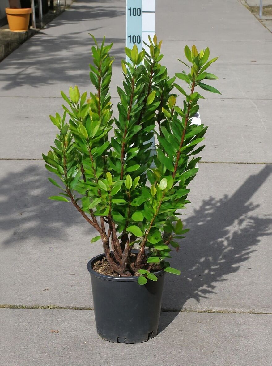| Wuchs: | Großstrauch bis kleiner Baum, gut verzweigt und dichtbuschig, bis zu 500 cm hoch und bis zu 200 cm breit |