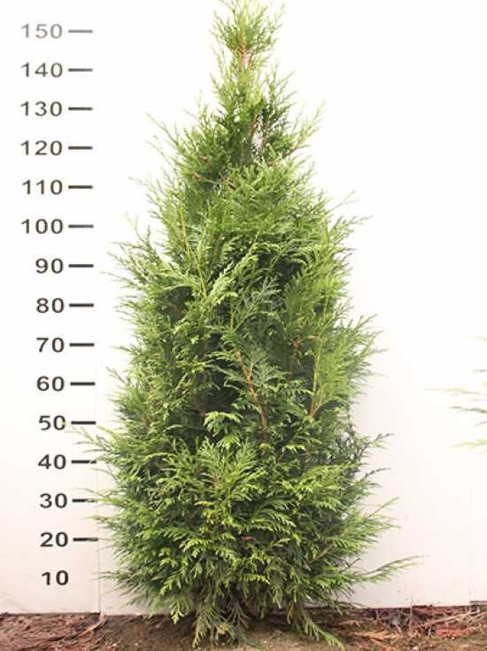 In unserem Shop bieten wir die Thuja plicata 'Excelsa' in verschiedenen Größen an. Die Wurzelverpackungen variieren zwischen Ballierung und mit Drahtballierung. Auf unserer Blogseite finden Sie wissenswerte Informationen zu den verschiedenen Wurzelverpackungen. Die Größen beginnen bei 80-100 cm und enden bei 700-800 cm. Einmal gepflanzt kann der Lebensbaum eine beeindruckende Größe von bis zu 15 m erreichen. In der Breite werden es häufig zwischen 3 bis 4 m. Natürlich bieten wir in unserem Shop verschiedene Kulturformen der Thuja an, welche alle eine unterschiedliche Größe erreichen. Eine kleinere Variante als der 'Excelsa' ist zum Beispiel die Thuja plicata '4ever Goldy'. Sie erreicht eine Höhe von bis zu 4 m und eine Wuchsbreite bis zu 1,5 m. Wie Sie sehen bieten wir Ihnen viele verschiedene Möglichkeiten an, um die richtige Lösung für Ihren Garten zu finden.