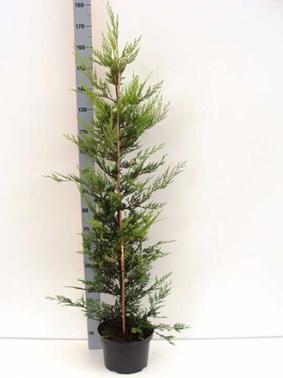 Wuchs: | Großer Baum, aufrecht, breit-säulenförmig bis kegelförmig, dichtbuschig, bis zu 8 bis 13 m hoch, schnellwüchsig. |