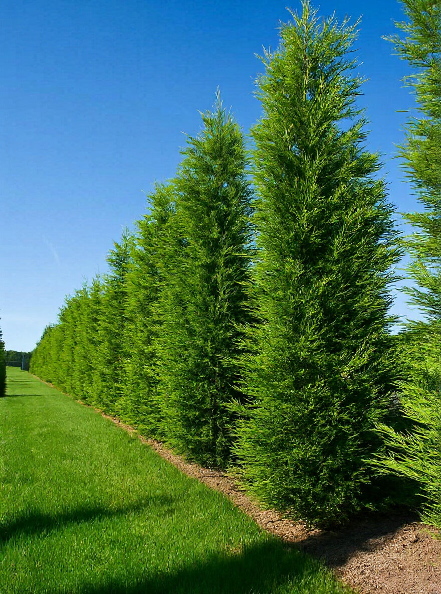 | Wuchs: | Großer Baum, aufrecht, breit-säulenförmig bis kegelförmig, dichtbuschig, bis zu 8 bis 13 m hoch, schnellwüchsig |
