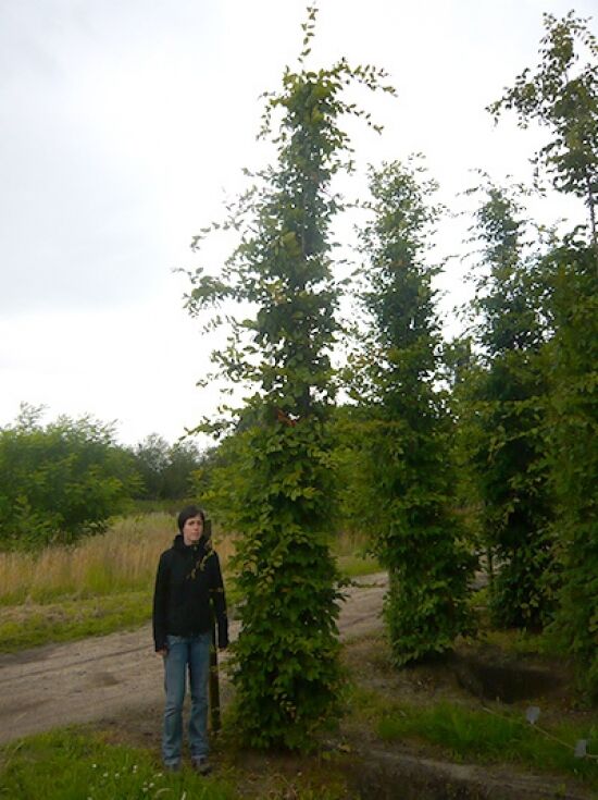 Die Carpinus betulus / Hainbuche gehört zum Standardsortiment einer jeden Baumschule im Bereich der laubabwerfenden Heckenpflanzen, welche neben der Privatgartenanwendung gern auch im Bereich der Aufforstung Anklang findet. Wir selbst führen dieses Gehölz bereits seit mehreren Jahrzehnten. Der Wuchs der Hainbuche verhält sich straff aufrecht aber zugleich auch unregelmäßig im Aufbau der Seitentriebe. In der Regel erweist sich die Wuchsform einstämmig.