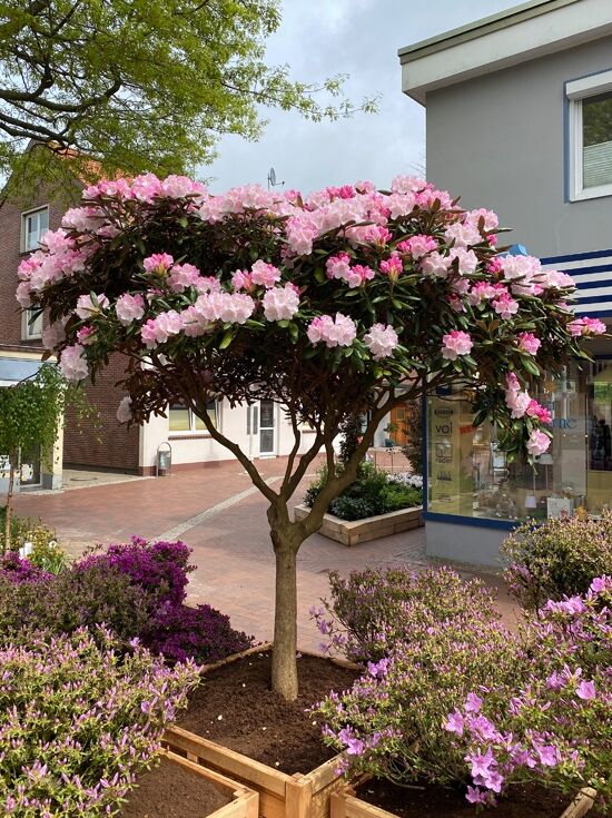 Was mag der Rhododendron yakushimanum 'Mist Maiden' 250 cm breit x 250 cm hoch Schirm auf Stamm nicht?