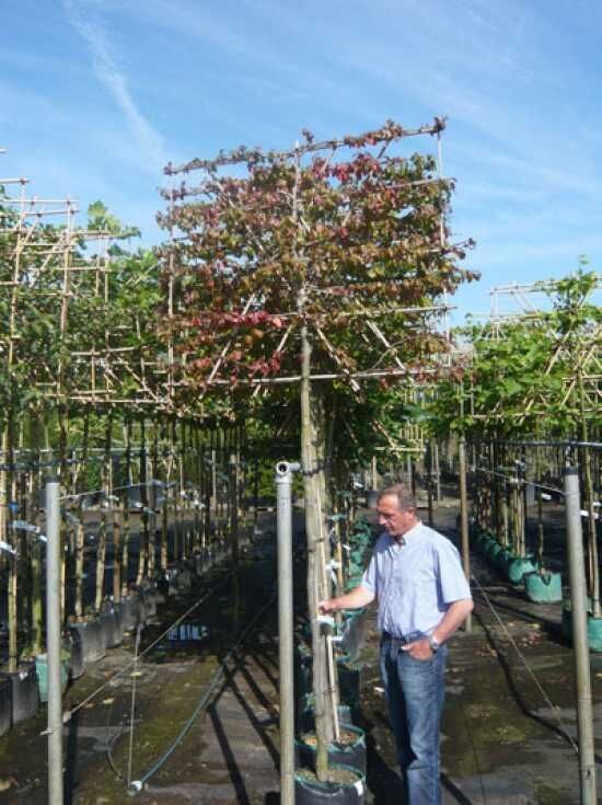 "Eisenholzbaum 'Hochstamm-Spalier' H:120 B:150 T:10 (Stamm 180 cm) / Parrotia persica"