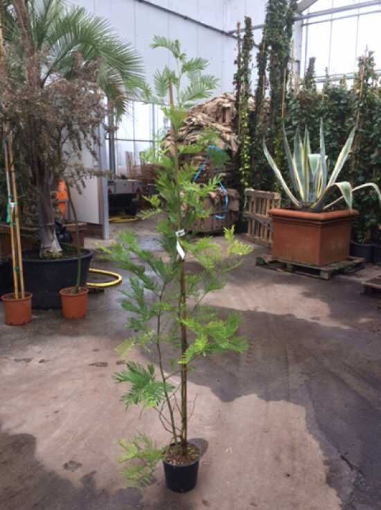| Eigenschaften: | Die Acacia dealbata (Silber-Akazie / Falsche Mimose) überzeugt vor allem durch die unglaubliche filigranen Blättern und der dekorativen gelben Blütenpracht. Um farbenfrohe und einzigartige Akzente zu setzen, darf die Silber-Akazie nicht fehlen! Vor allem als Kübelpflanze auf Terrassen oder in Wintergärten sehr zierend. Ab Mitte Mai bis Mitte September kann die Pflanze nach draußen gestellt werden. Für die Überwinterung benötigt die Pflanze einen sehr hellen Standort bei einer Temparatur von + 8 Grad bis + 5 Grad. Zusätzlich sollte die Gießemenge und -häufigkeit in der Winterruhe angepasst werden und auf eine gleichmäßige Bodenfeuchtigkeit geachtet werden. Bei einen zu dunklen Standort oder wiederholten Trockenheit kann die Acacia dealbata (Silber-Akazie / Falsche Mimose) mit einen Laubabwurf reagieren.. |