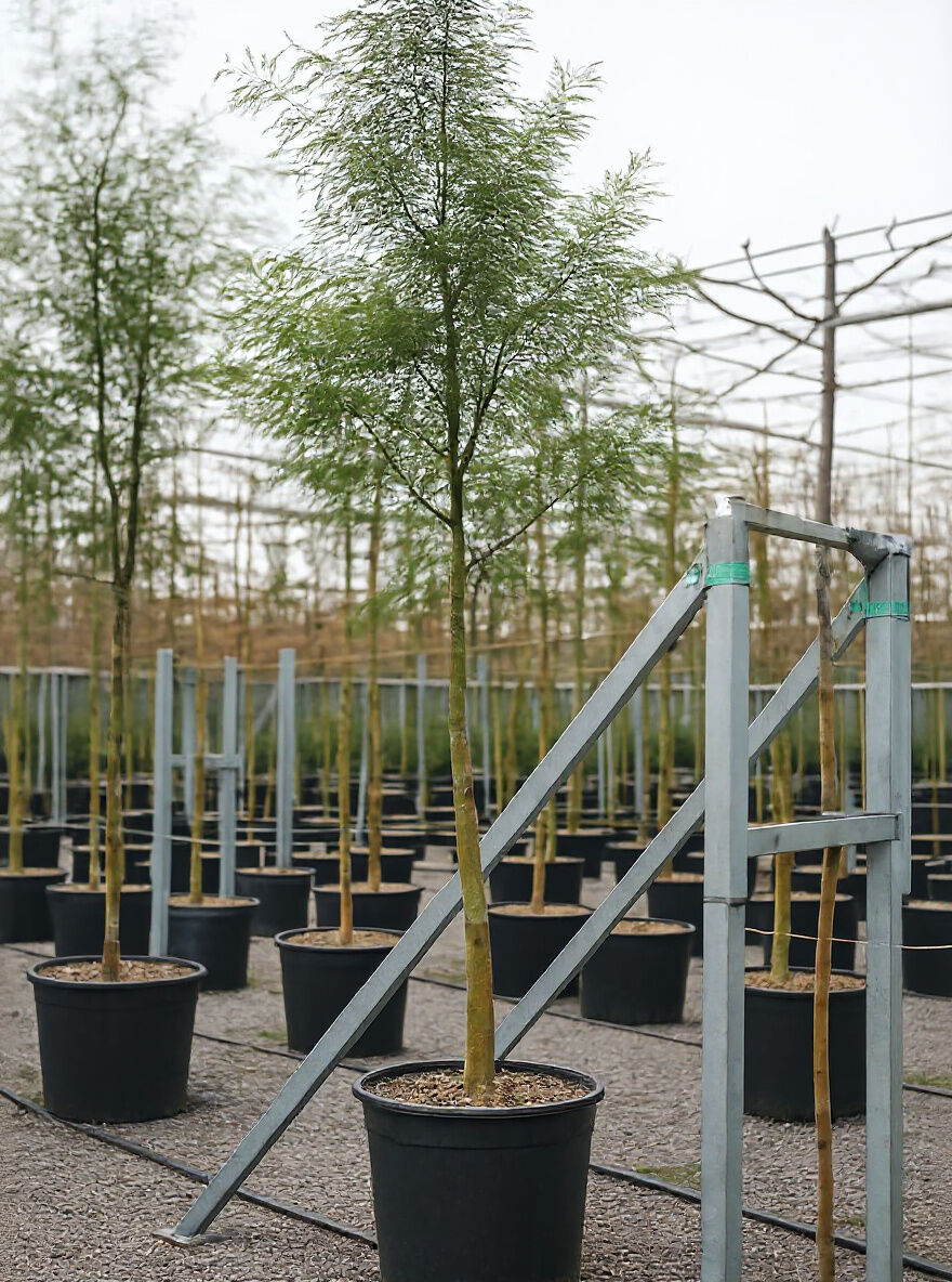 Silber-Akazie (Acacia dealbata) Hochstamm 16-18 StU im Container, schlanker Stamm mit feinem, gefiedertem Laub