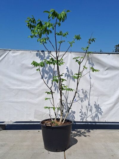 | Blatt: | Sommergrün, unpaarig gefiedert, 5 bis 9 Teilblättchen, elliptisch bis länglich, gezähnter Rand, dreilappig, dunkelgrün, Herbstfärbung gelb, bis zu 35 cm lang |