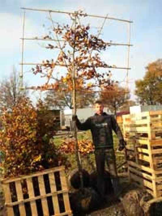 Pflanz- und Pflegetipps Fagus sylvatica / Rotbuche / 'Hochstamm-Spalier' H:120 B:180 T:10 (Stamm 200 cm)