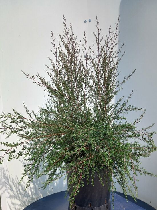 | Wuchs: | Kleiner Strauch, sparrig, dicht verzweigt, kompakte rundliche Krone, langsam wachsend, bis zu 2,4 Meter hoch und 1,5 Meter breit |