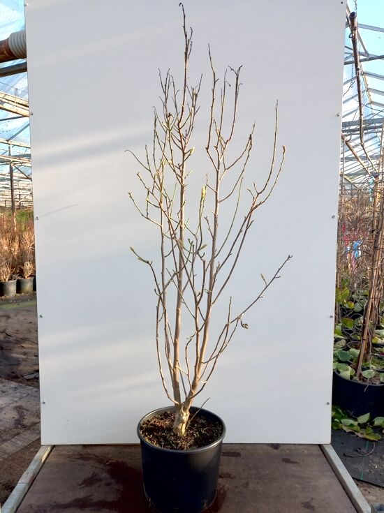 | Wuchs: | Großer Strauch, aufrecht, schlank, pyramidale Krone, locker verzweigt, bis zu 4 Meter hoch und 1,5 Meter breit. |