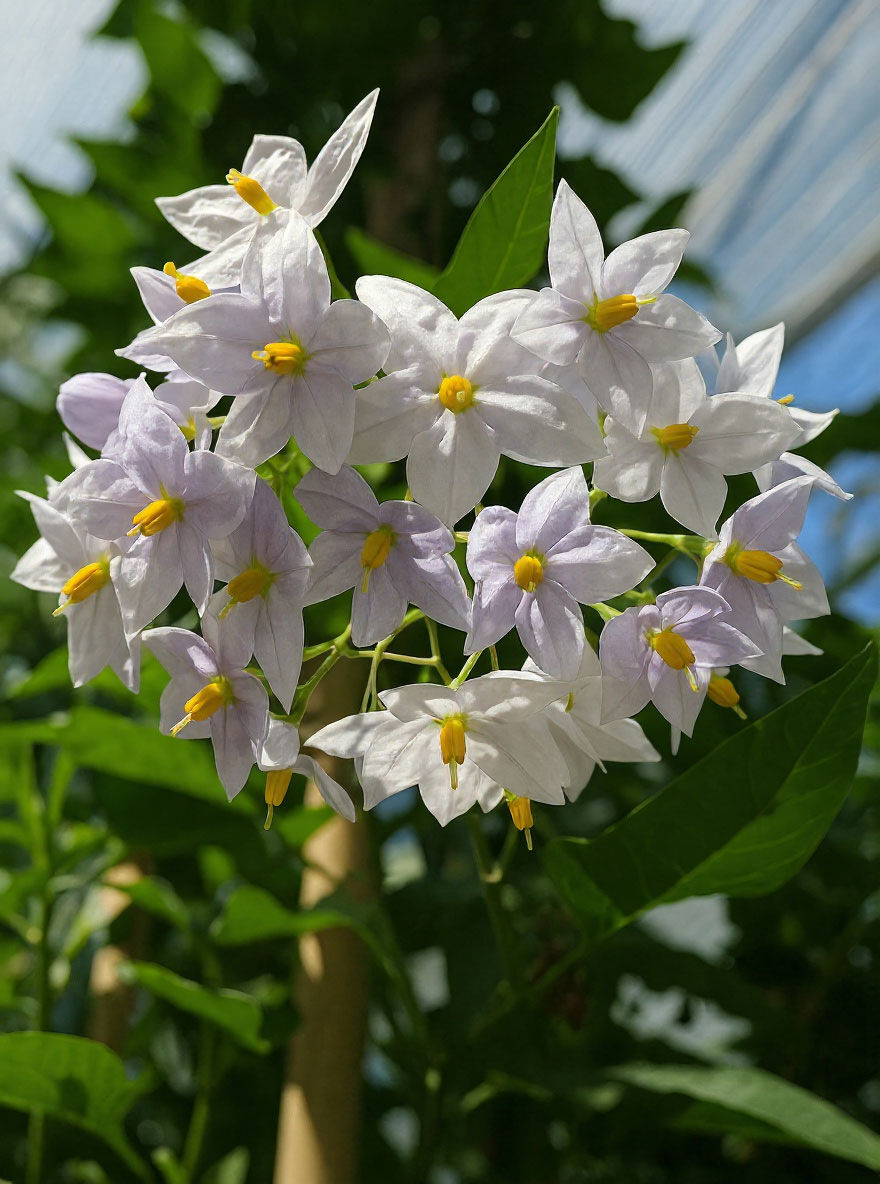 Der Sommerjasmin (Solanum jasminoides) ist eine strahlende Schönheit, die mit ihren rankenden Trieben wunderschöne Gartenmomente beschert. Die Kletterpflanze umrankt Bäume, Rankhilfe und Lauben...