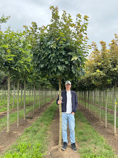 Acer platanoides 'Globosum' Kugel-Ahorn, Hochstamm Kugelbaum ca. 225 cm, Stammumfang 14–16 cm, mit Drahtballen