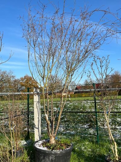 Wuchs: | Großstrauch oder kleiner Baum, zierlich, trichterförmig aufrecht, locker gestellte Hauptäste, im Alter schirmförmig mit leicht überhängenden Ästen, 5 bis 10 m hoch und 3 bis 10 m breit |