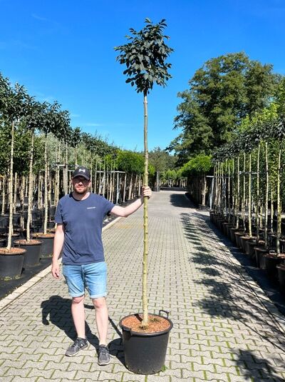 | Detaillierte Beschreibung: | Herkunft und Besonderheiten der Kugel Blumen-Esche / Fraxinus ornus ’Meczek‘Die Selektion Fraxinus ornus ’Meczek‘ stammt aus Ungarn und wurde dort zufällig wachsend im gleichnamigen Meczek-Gebirge entdeckt. Sie erfreut sich einer großen Beliebtheit unter den europäischen Gartenfans, da sie mit ihrem kompakten und nahezu kugeligen Wuchs perfekt für die Pflanzung in einem kleinen Garten geeignet ist. Blumen-Esche mit Kugelkrone – formschön und blütenreichAufgrund ihrer Wuchsform ist diese Eschenart im Handel unter dem Synonym Kugel-Blumen-Esche zu finden. Mit einer kompakten, aber formschönen Linie und einer üppigen wohlriechenden Blüte setzt die Selektion ’Meczek‘ traumhafte Akzente und wird zu einer sehenswerten Alternative zu anderen Kugelbäumen. Die Blumen-Esche ist in Europa ein populäres ZiergehölzDer Wildtyp Fraxinus ornus gilt als die Eschenart besonders langsamem Wuchs und eröffnet damit ein großes Pflanzspektrum. Sie ist als Ziergehölz in vielen Hausgärten anzutreffen und wird für ihre spektakuläre Blüte im Frühjahr bewundert; das ist auch der Grund für den Trivialnamen Blumen-Esche. Sie gehört zusammen mit dem Flieder und dem Olivenbaum zur großen Familie der Ölbaumgewächse. Baum mit großer Bedeutung als KlimawandelgehölzObwohl sie in Deutschland auch in freier Natur zu finden ist gilt sie hier nicht als heimisch. Sie wurde aus forstwirtschaftlichen Gründen aufgeforstet und gilt als wertvoller Klimawandelbaum, der mit großer Trockenheitsresistenz erfreut. Ursprünglich stammt die Blumen-Esche aus dem Süden Europas sowie aus Kleinasien, wo sie an Berghängen und in Trockenwäldern zu finden ist. Auch unter dem Begriff Manna-Esche bekanntAuch unter dem Trivialnamen Manna-Esche ist Fraxinus ornus manchen Gärtnern geläufig. Diesen Namen verdankt sie ihrem süßlich schmeckenden Saft, der aus der Rinde gewonnen wird. Er wird als Manna-Saft vermarktet, enthält Alkohol und wird vor allem im Bereich der Volksmedizin verwendet. Bereits seit dem 15. Jahrhundert wird Fraxinus ornus daher zur Gewinnung des Saftes in Südeuropa auf Plantagen kultiviert. Wuchshöhe: Kugel-Blumen-Esche wird bis zu 6m hochFraxinus ornus ’Meczek‘ wächst zumeist als Hochstamm, ist aber auch strauchartig im Handel erhältlich. Das wunderschöne Zierelement erreicht je nach Pfropfhöhe eine ungefähre Endhöhe von 4-6 Metern und verfügt über einen Kronendurchmesser von bis zu 4 Metern. Der kleine Baum belebt jedem Garten mit seiner besonderen Ausstrahlung und setzt formschöne Akzente, die sowohl den kleinen Hausgarten als auch eine herrschaftliche Parkanlage aufwerten. Gleichmäßige Kugelform ohne aufwändige RückschnittmaßnahmenBesonders markant macht die Kugelförmige.... |