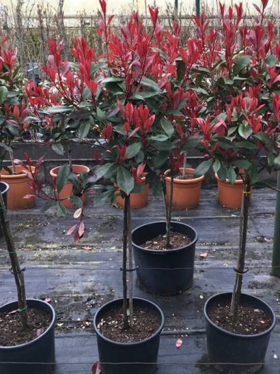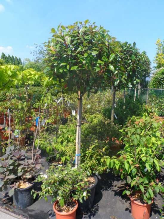 Eigenschaften: | Die Photinia fraseri 'Red Robin' Hochstamm (Glanzmispel 'Red Robin') ist frosthart, hitzeresistent und äußerst attraktiv. Sicherlich eine der Pflanzen, die in den letzten Jahren den größten Fan-Zuwachs verzeichnen konnte. Sie blüht überschwenglich und zeigt vor allem mit ihrem rot-grünen Laub eine Farbkombination, die ihres Gleichen sucht. Tolles immergrünes Gehölz. Auch als Kugelbaum sehr interessant! Der Photinia Hochstamm bietet ebenfalls einen immergrünen Sichtschutz zum Nachbargrundstück.. |